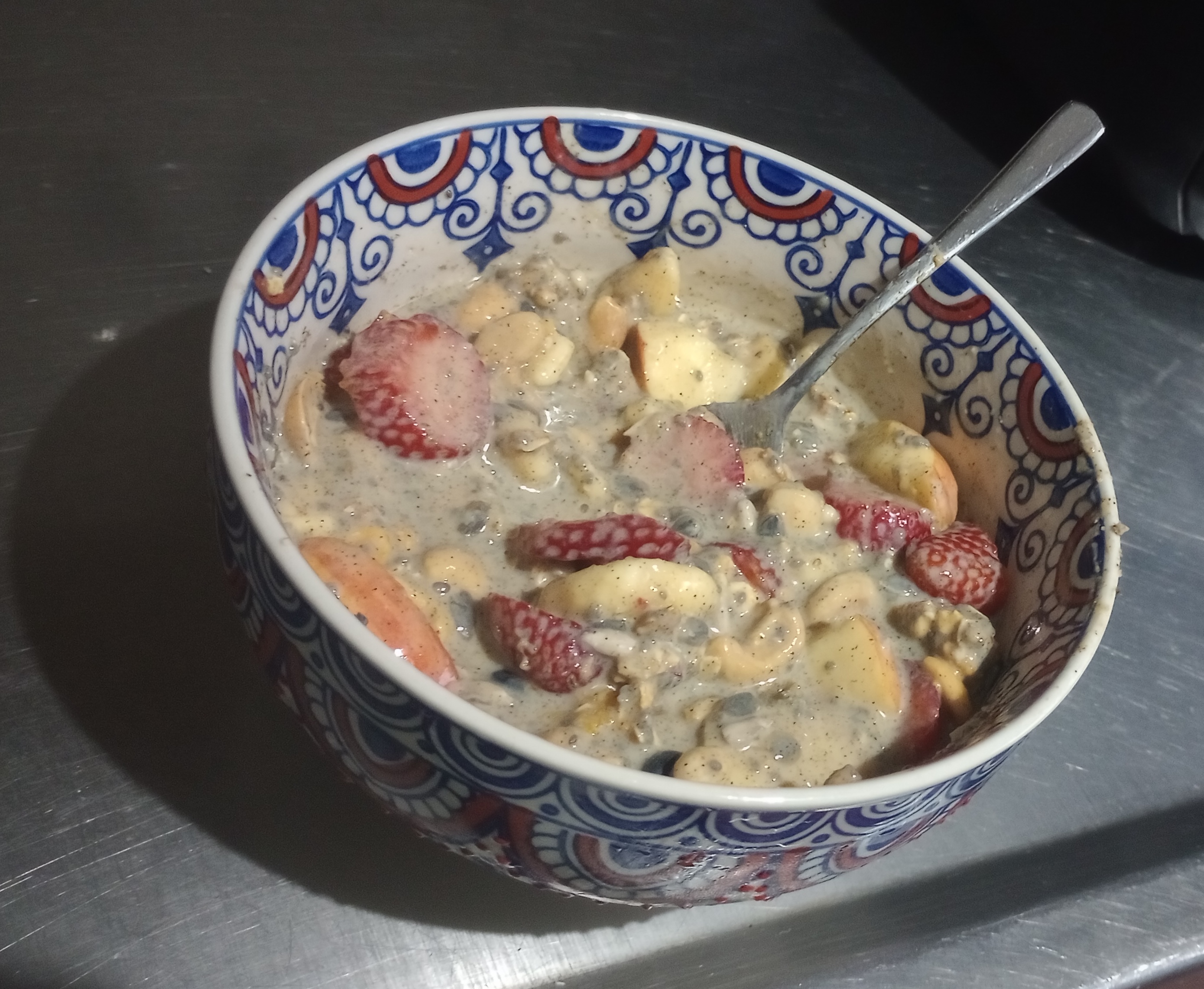 Cocoa, banana, peanut butter, cinnamon, oats#